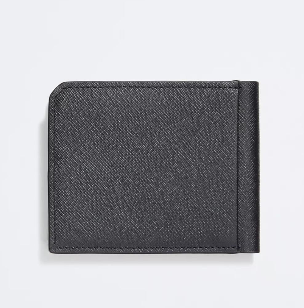 محفظة أساسية تلبي جميع احتياجاتك. يتميز هذا التصميم بجلد سافيانو المزخرف مع فتحات داخلية متعددة وتصميم شعار مميز ونافذة شفافة لبطاقة الهوية لمزيد من التنوع.